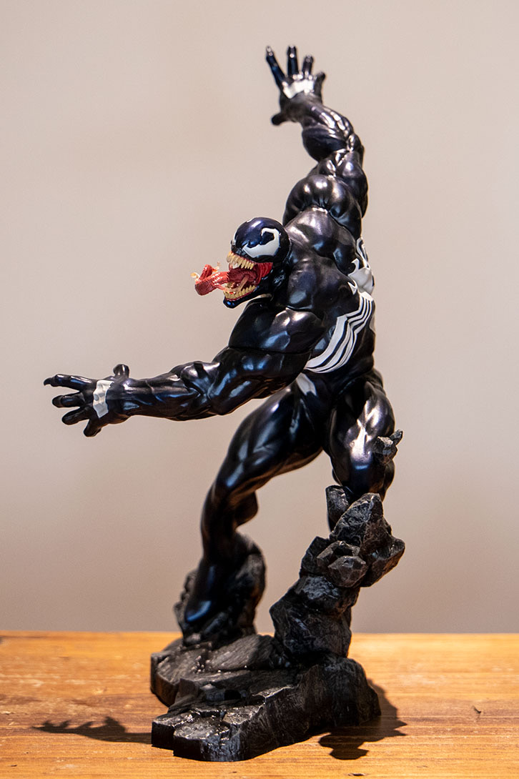 迫力満点の全高約24センチで立体化された、専用の台座も付属される「ヴェノム」のフィギュアです!