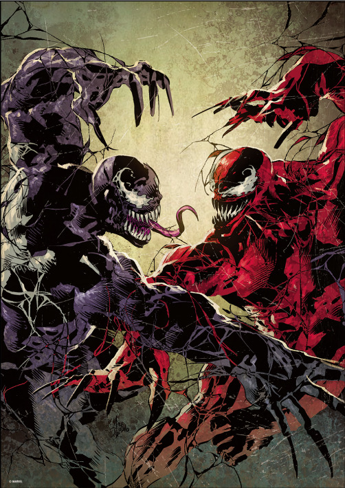 白熱のバトルシーンが描かれた「ヴェノム」と「カーネイジ」のアートや
