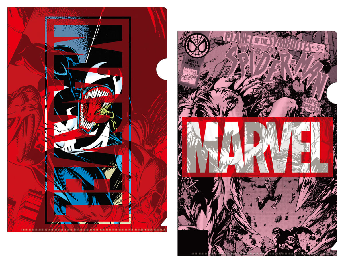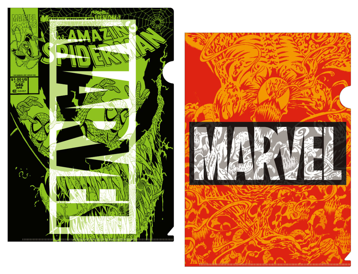 MARVELのロゴとアメコミ風のアートが映えるクリアファイル