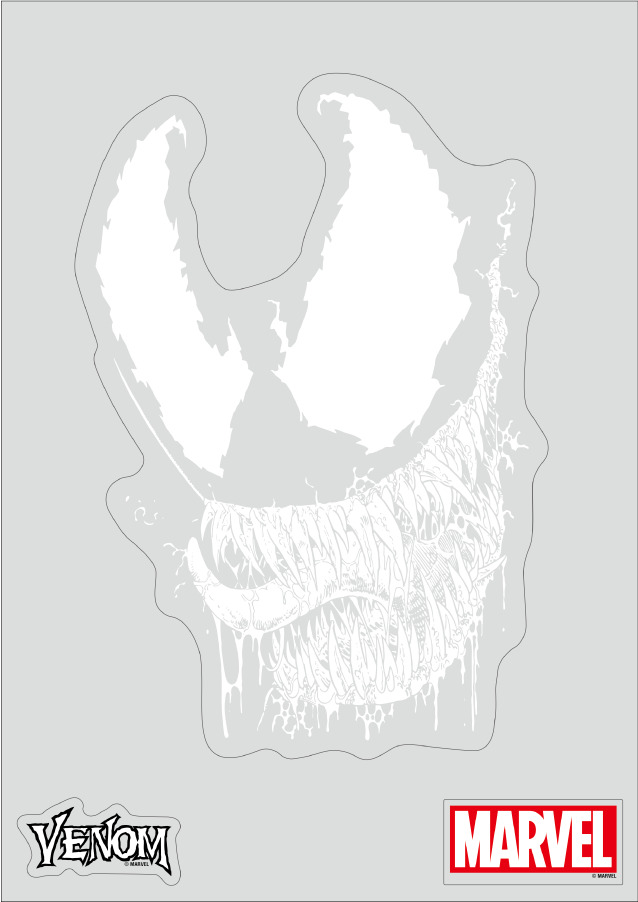 ホワイトのワントーンで「ヴェノム」の顔がアップでプリントされた全6柄がラインナップ。