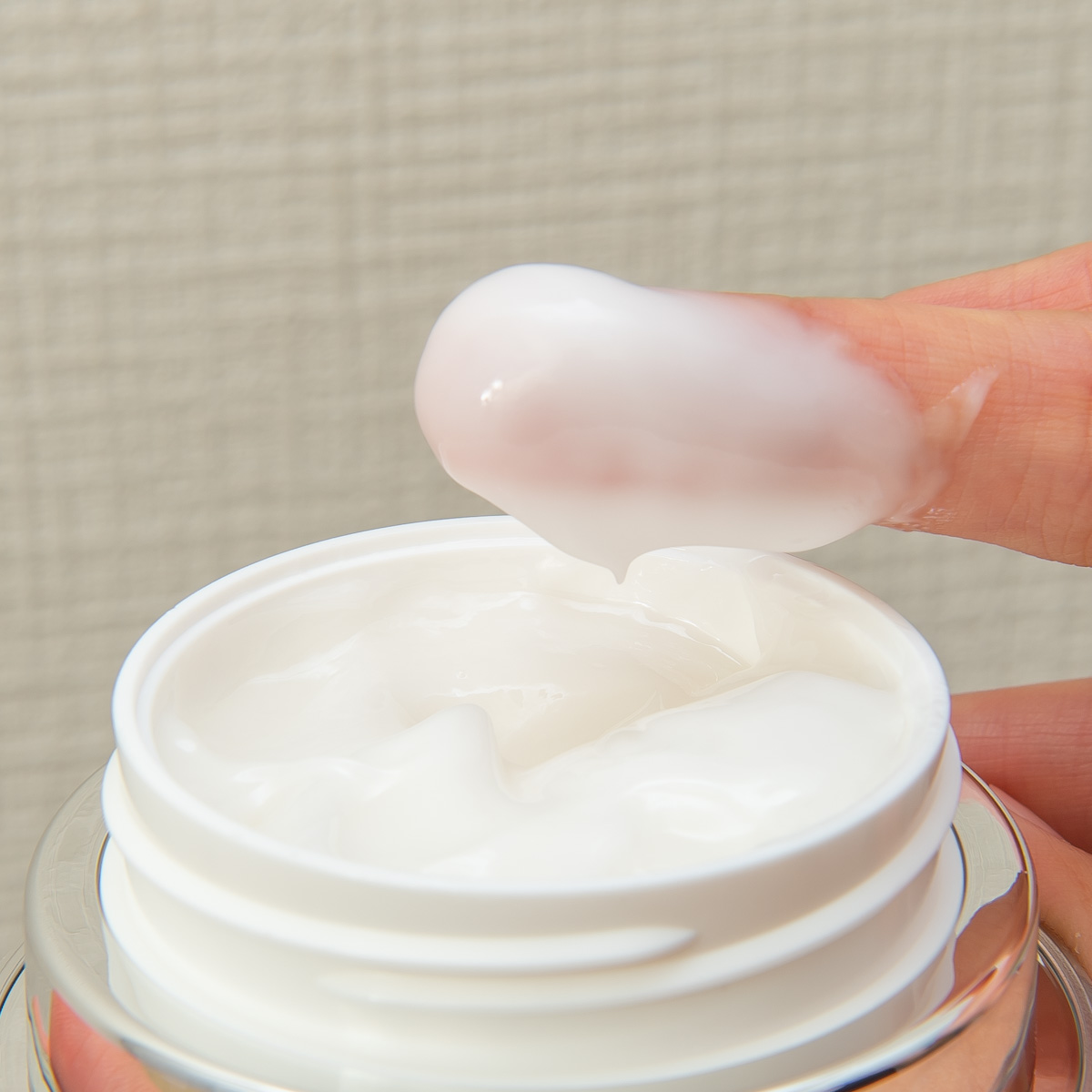 淡いピンク色と華やかな香りがときめく、ぽってり濃厚なクリームです。