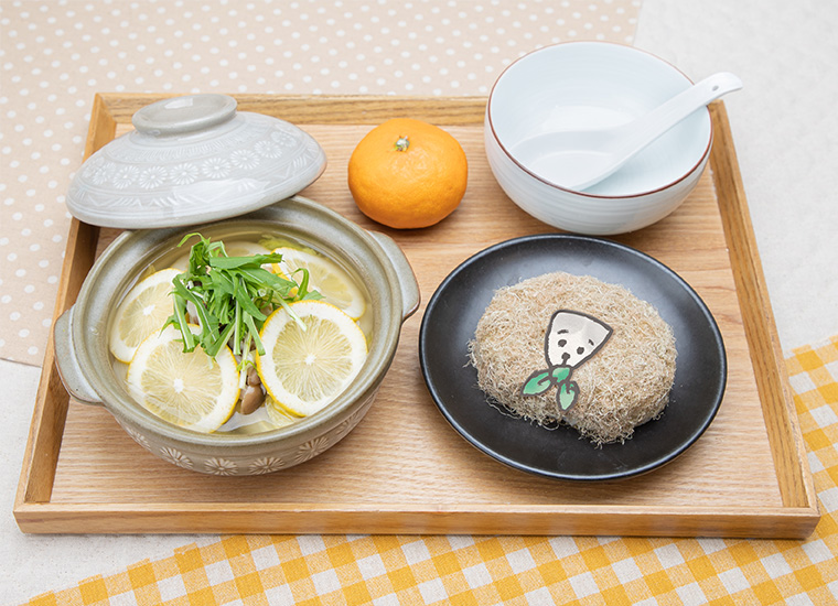 さっぱりレモン鍋と「コソコソ」のおにぎりのセット。