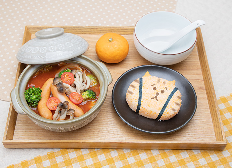 トマト鍋と「サスペンダー」のおにぎりセット。