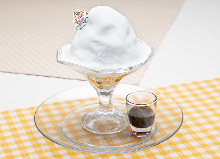 雪山をイメージしたあんみつを華麗に滑る「ウェイウェイ」