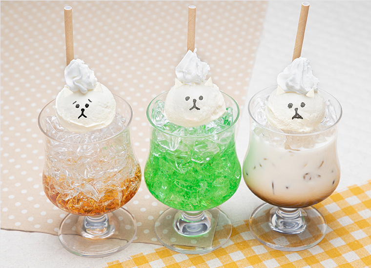 それぞれのドリンクと甘い「にゃんすけアイス」がマッチしたSNS映え間違いなしのフロートドリンクです☆
