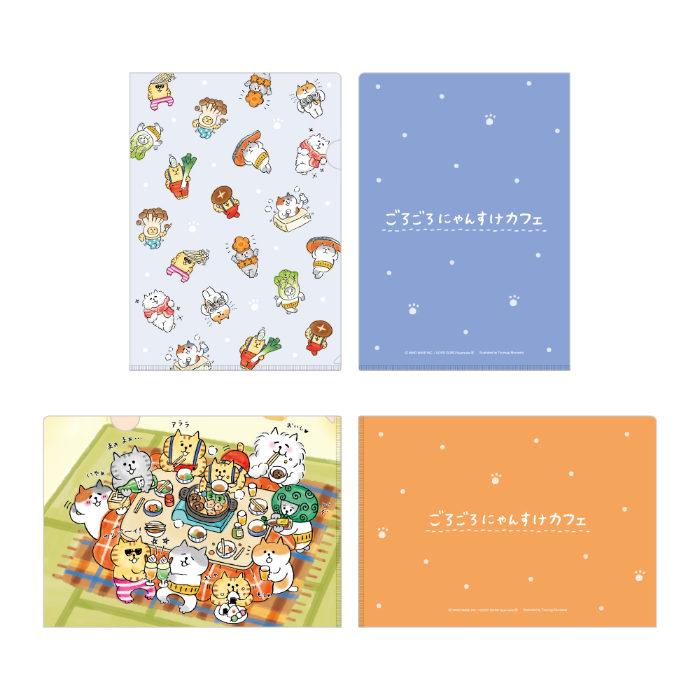 メインビジュアルを使用したデザインと、鍋の具材と共演した「にゃんすけ」たちの総柄デザインの2種が揃います。