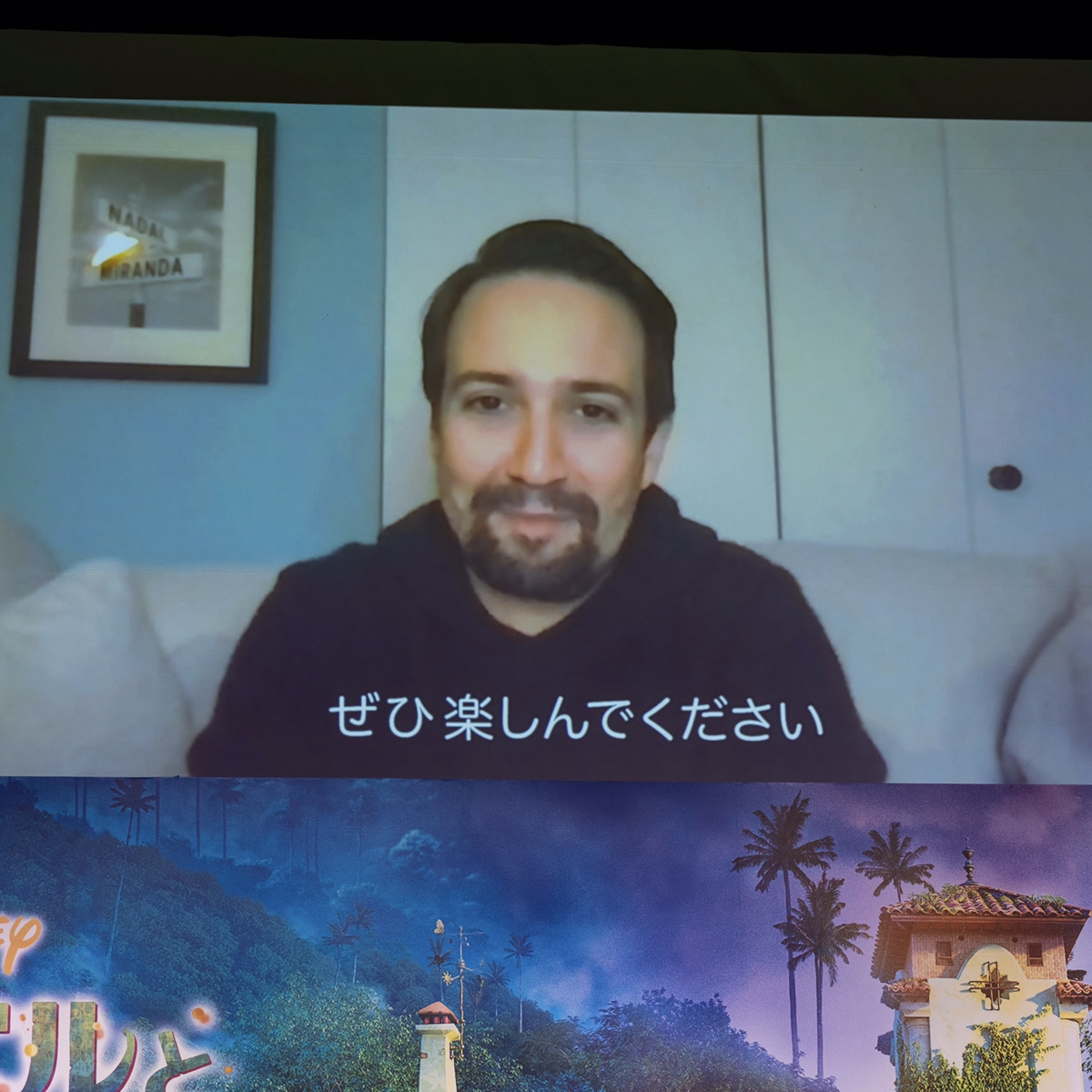 熱のこもったトークで会場が繰り広げられる中、3人の元へ、『ミラベルと魔法だらけの家』の音楽を手掛けたリン・マニュエル=ミランダさんからビデオメッセージが到着!