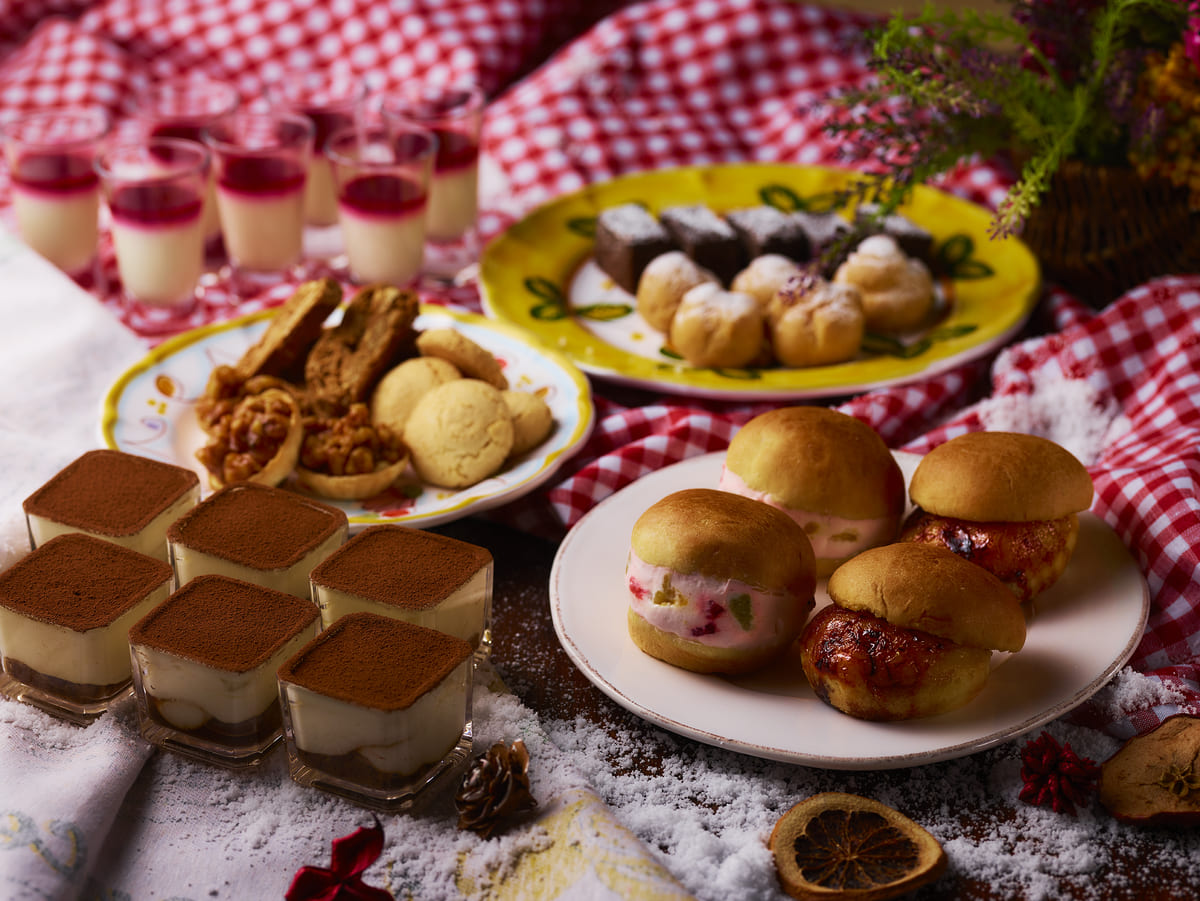 デザートコーナーにもイタリアンドルチェが並び、伝統菓子「くるみのタルト」をはじめ、「アマレッティ」や「ビスコッティ」などが登場。