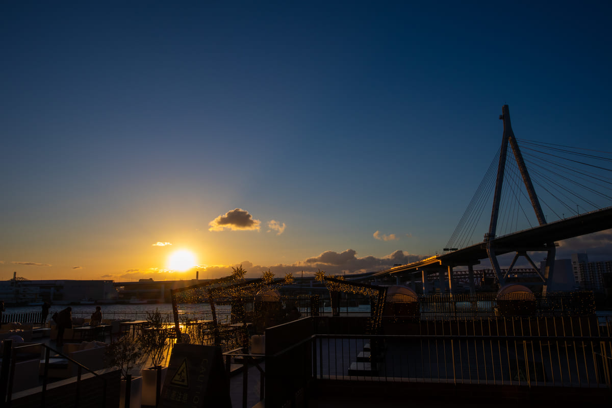 初日の出が見える時間帯に、テラスにて日本酒やあたたかい甘酒のふるまいサービスを実施。