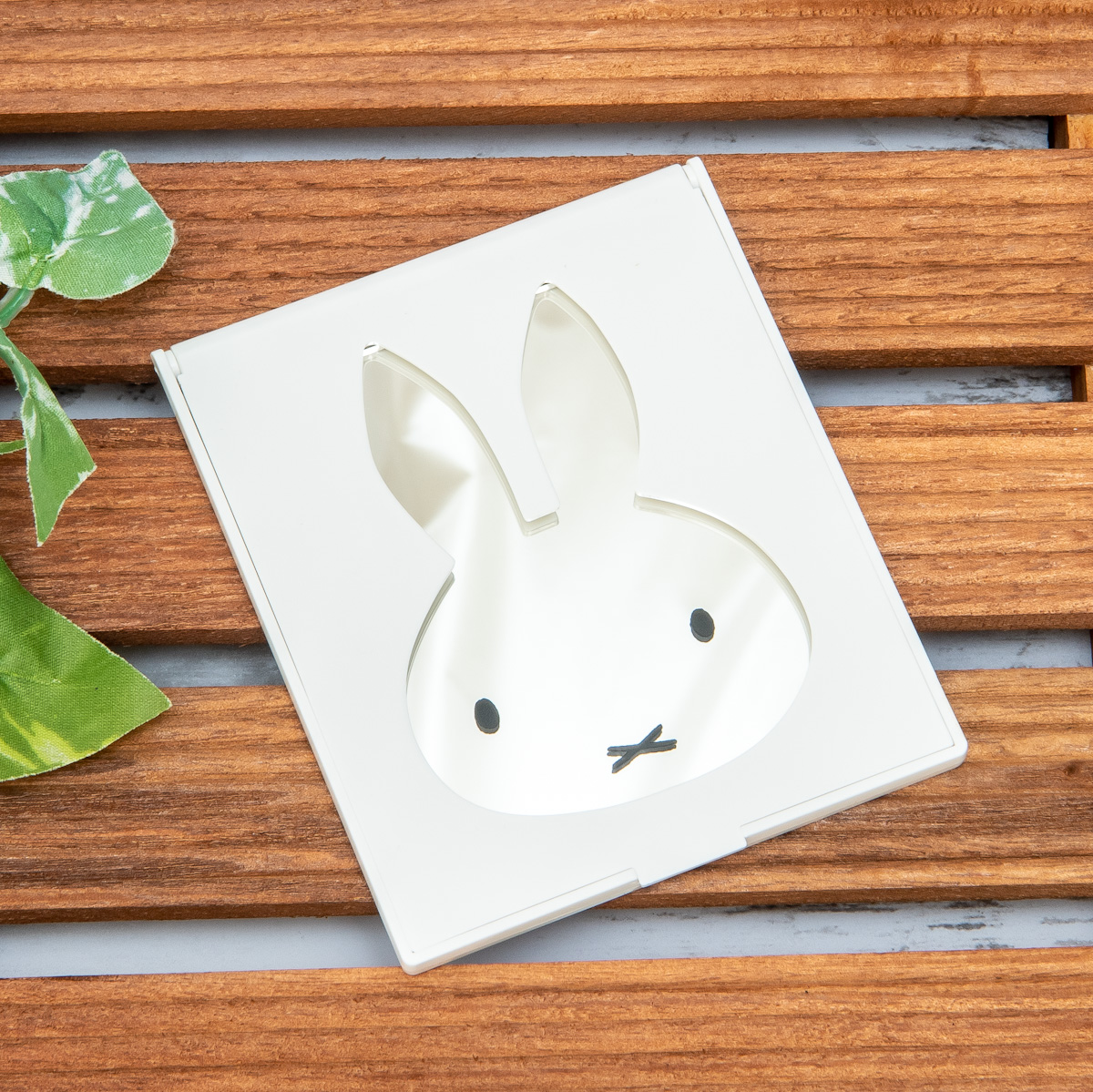 蓋が「ミッフィー」のお顔の形にダイカットされていて、切り抜きからはミラーがのぞきます。
