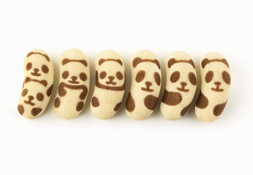 しぐさのひとつひとつが可愛いパンダをイメージして、「2匹でなかよし~」「おなかすいた...」「 わーい!」など、なんだかもの言いたげな“6種類のポーズ”の『東京ばな奈パンダ』たちがラインナップ。
