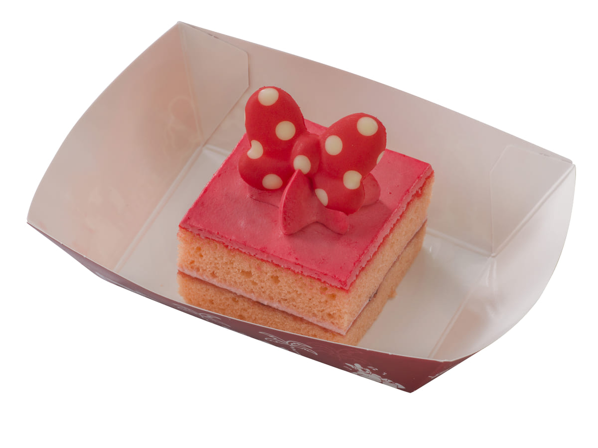 スポンジケーキにストロベリージャムとストロベリークリームがサンドされたミニーマウスをイメージしたケーキ。