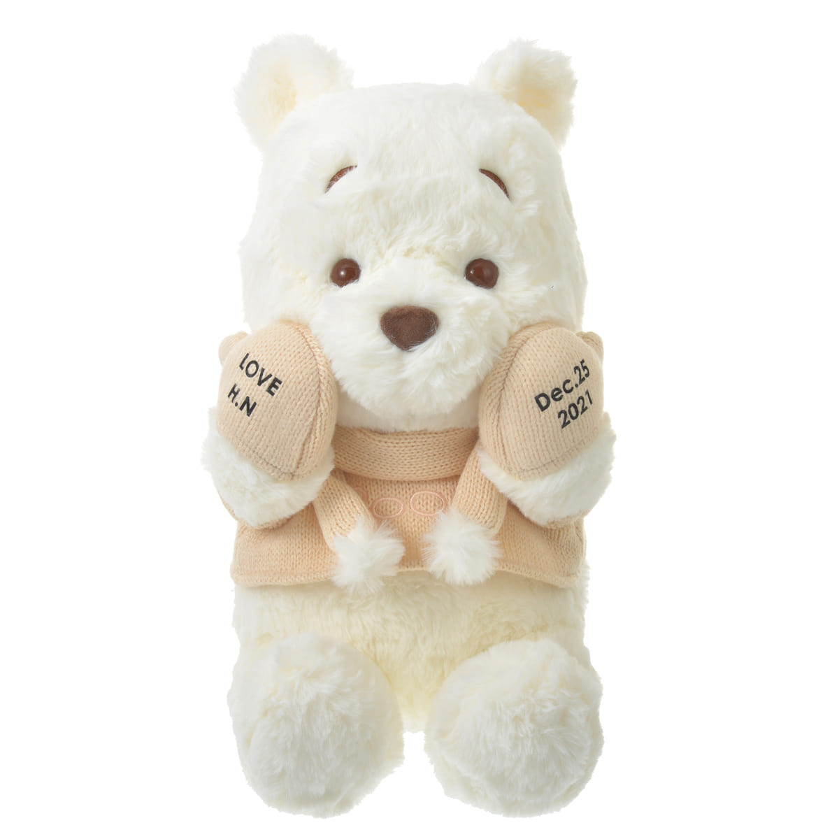 【D-Made】名入れプーさん ぬいぐるみ(M) White Pooh ミトン
