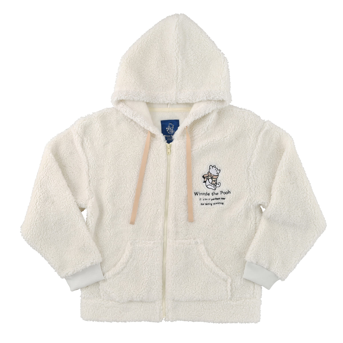 「プーさん」のワンポイント刺しゅうが可愛いボアパーカー。