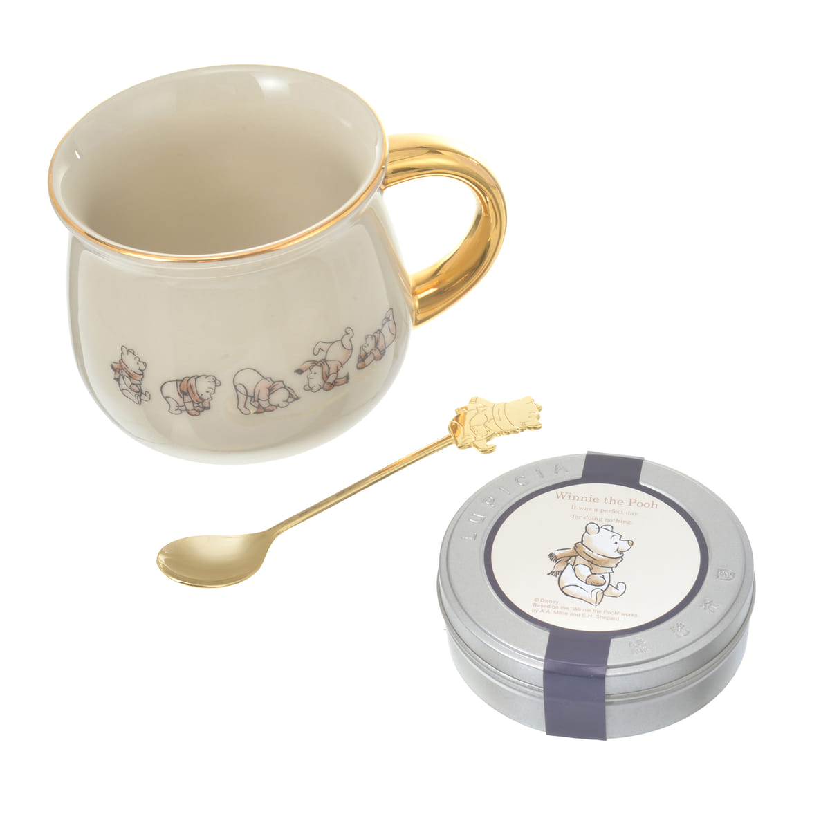 世界のお茶専門店「LUPICIA(ルピシア)」から発売される「プーさん」をイメージしたフレーバードティーとカップ、スプーンのボックスセット。