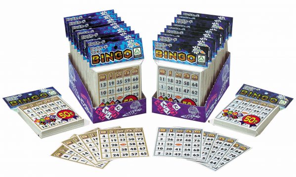 ビンゴゲームを遊ぶときに使う、5×5マスに数字の入ったカード50枚入り。