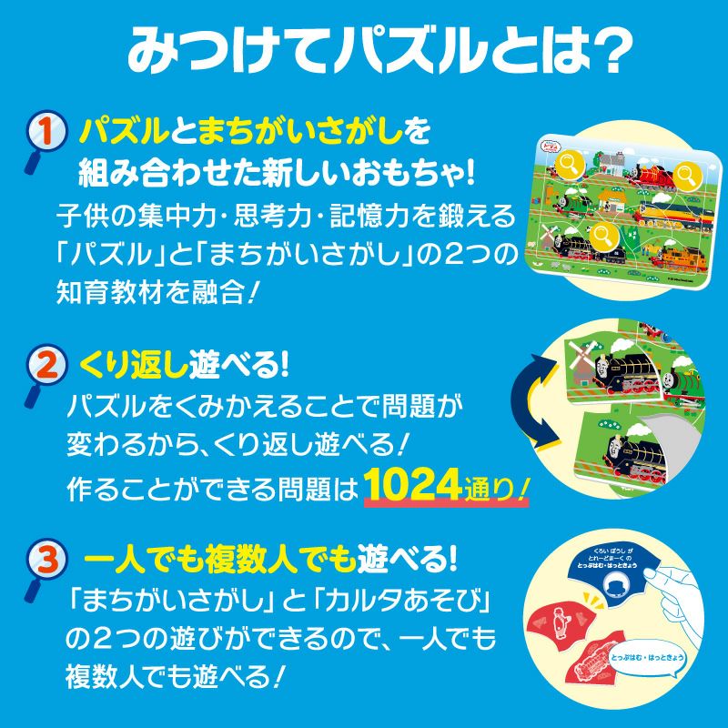 今回は『きかんしゃトーマス』の仲間たちと、間違い探し×パズルで2つの「気づく力」を育む「みつけてパズル」を紹介します☆