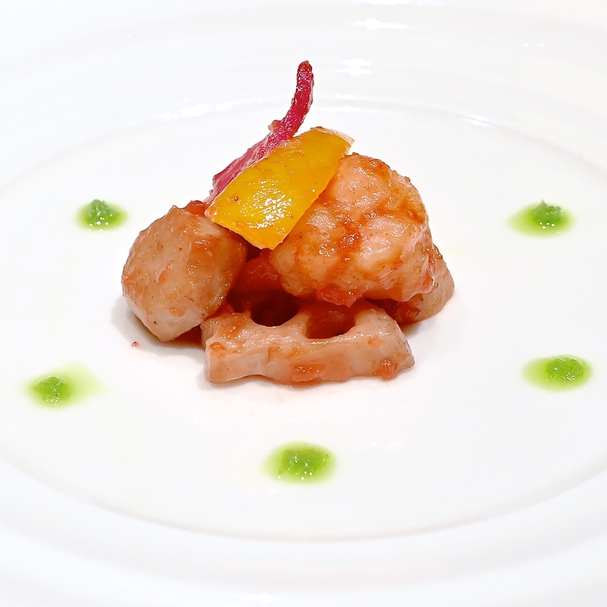 • イセエビと野菜の紅麹炒め