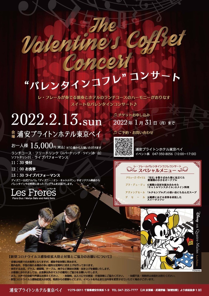浦安ブライトンホテル東京ベイにて、2022年2月13日(日)に開催される「”バレンタインコフレ”コンサート」の紹介でした☆