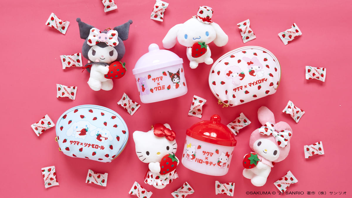「ハローキティ」「マイメロディ」「ポムポムプリン」「シナモロール」「ポチャッコ」「クロミ」ら「サンリオキャラクターズ」といちごいっぱいのデザインで5種のアイテムが展開されます☆
