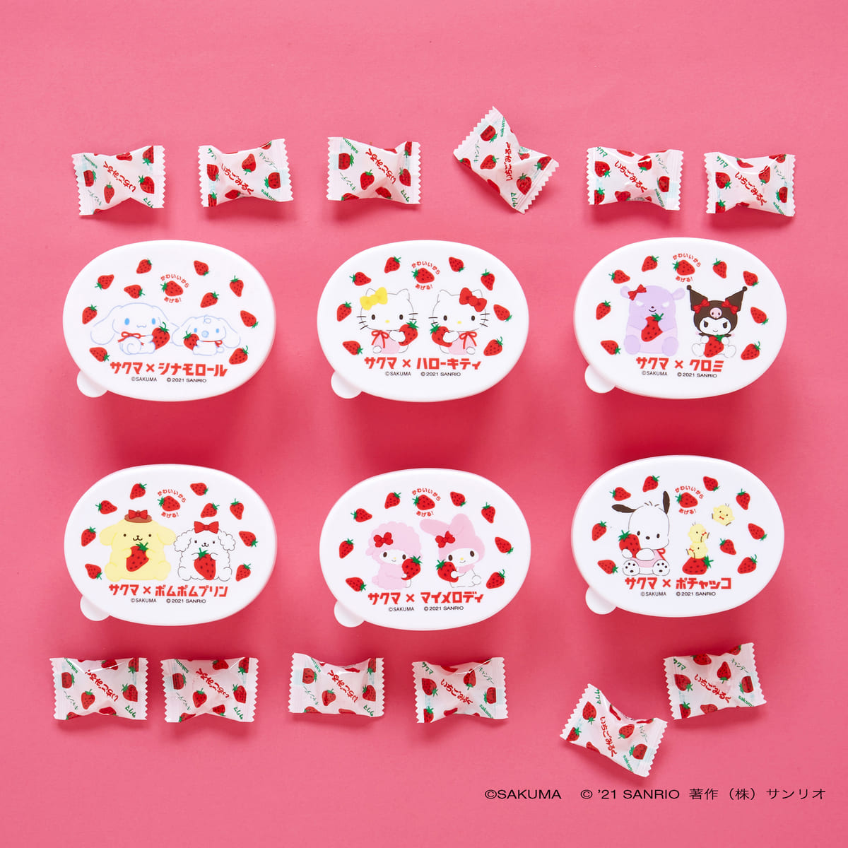 サンリオから、毎年人気のサクマ製菓の「いちごみるく」とのデザインコラボ「サンリオキャラクターズ サクマいちごみるくコラボ菓子ギフト」シリーズが2021年もお目見え。