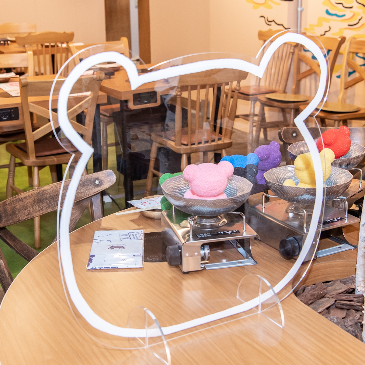アクリルパーテーションもくまちゃんの形になっていたり、