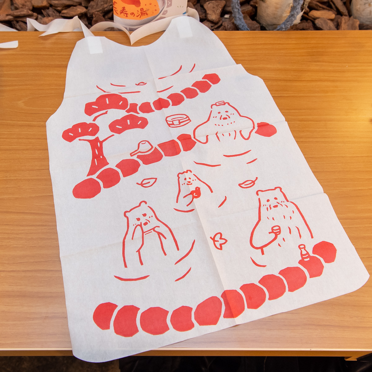 紙エプロンにもくまちゃん。