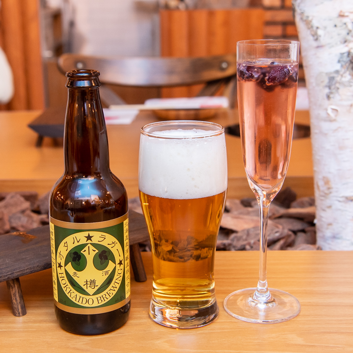 豪快な肉料理や北海道のクラフトビール、ハスカップを使ったアルコールなどが取りそろえられています。