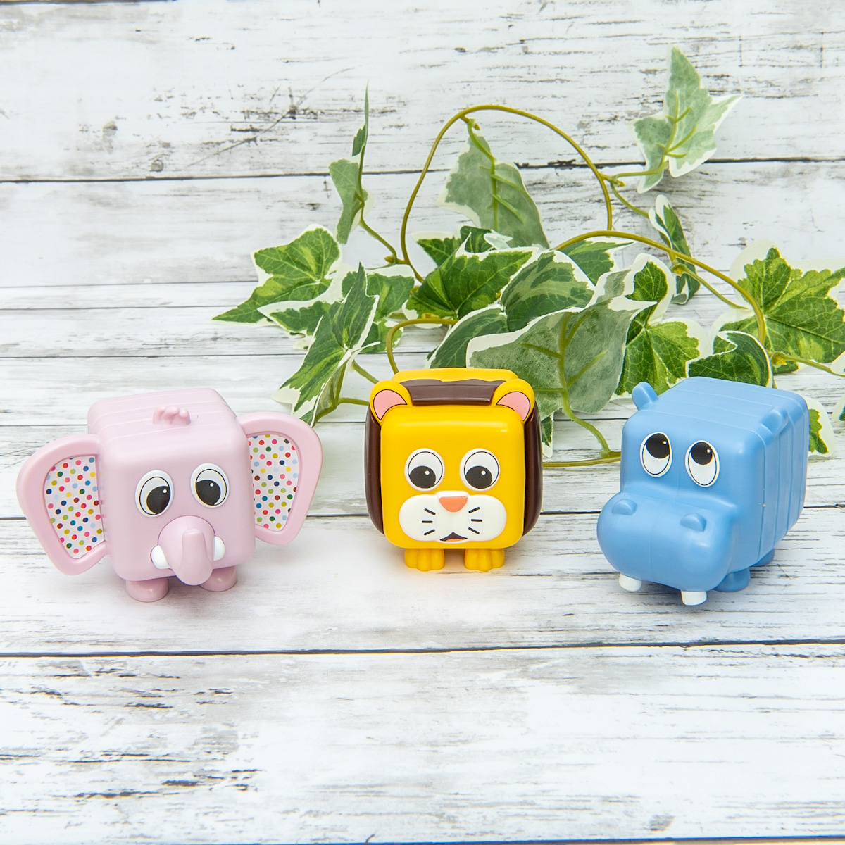 「どうぶつブロック」の第1弾は、ライオンやゾウ、カバがラインナップ。