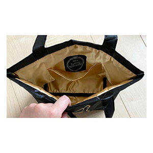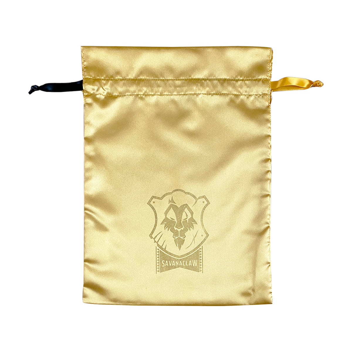 光沢のある黒いサテンにゴールドで「サバナクロー寮」のエンブレムをあしらったランチバッグ。