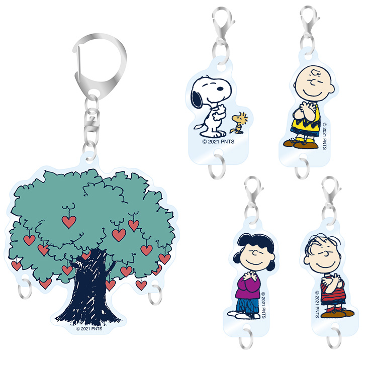 やさしさの木アクリルキーホルダーに好きなキャラクターのチャームを組み合わせて楽しめます。
