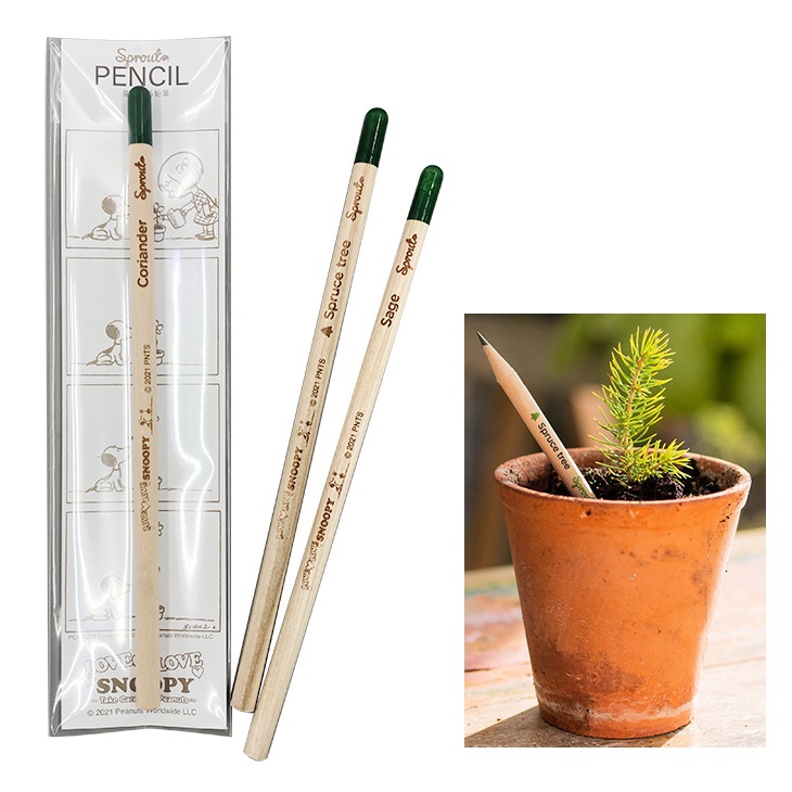 一見ただの鉛筆のように見えますが、短くなった鉛筆を土に植えると、芽がでます。