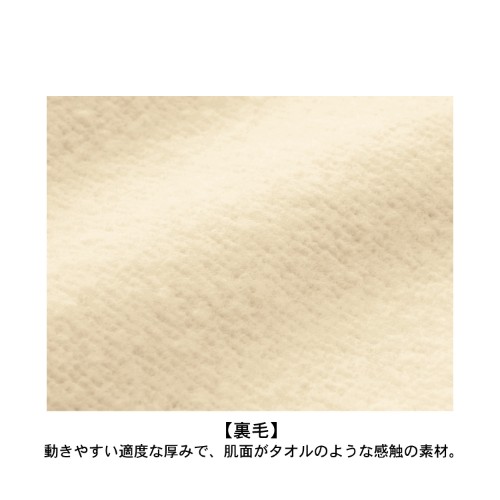 やわらかな着心地の綿100%裏毛素材を使用し、タオルのような柔らかな感触。