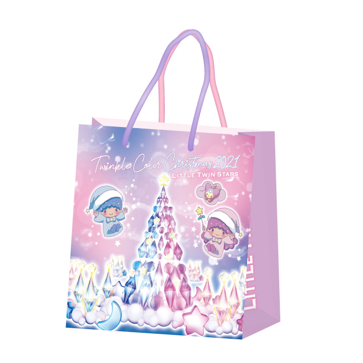 「リトルツインスターズ」の2人がキラキラのツリーといっしょにデザインされた、クリスマスにぴったりのショッパーです。