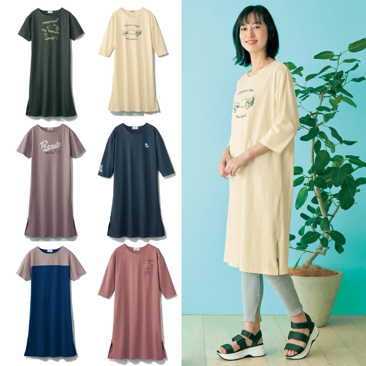ベルメゾンから、すっきり着られて1枚でもコーデが決まる「スヌーピー」おとなのカットソーワンピースが登場。