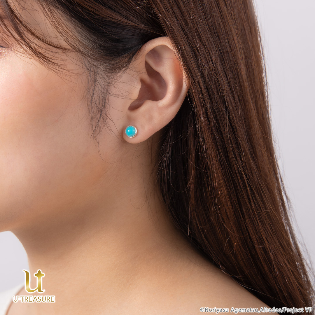 トルコ石が印象的なピアスで、ポストにはさりげなく「ロビン・ラフィット」のネームが刻印されています。