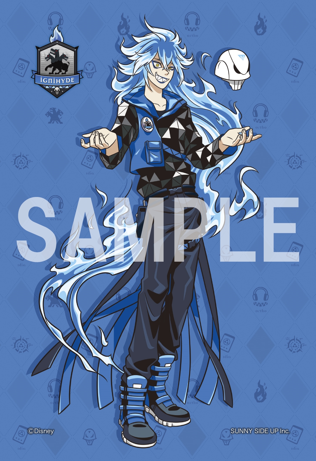 ヘッドフォンや炎のモチーフに寮カラーのライトブルーを合わせた「イグニハイド寮」