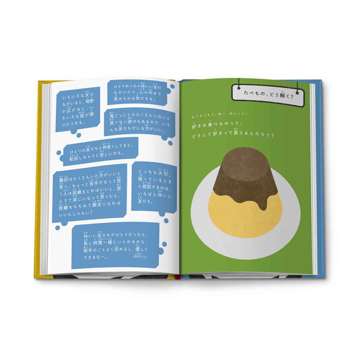 オンラインワークショップを通して子供たちから生まれた、答えのない道徳の問題の数々が多数掲載されています。