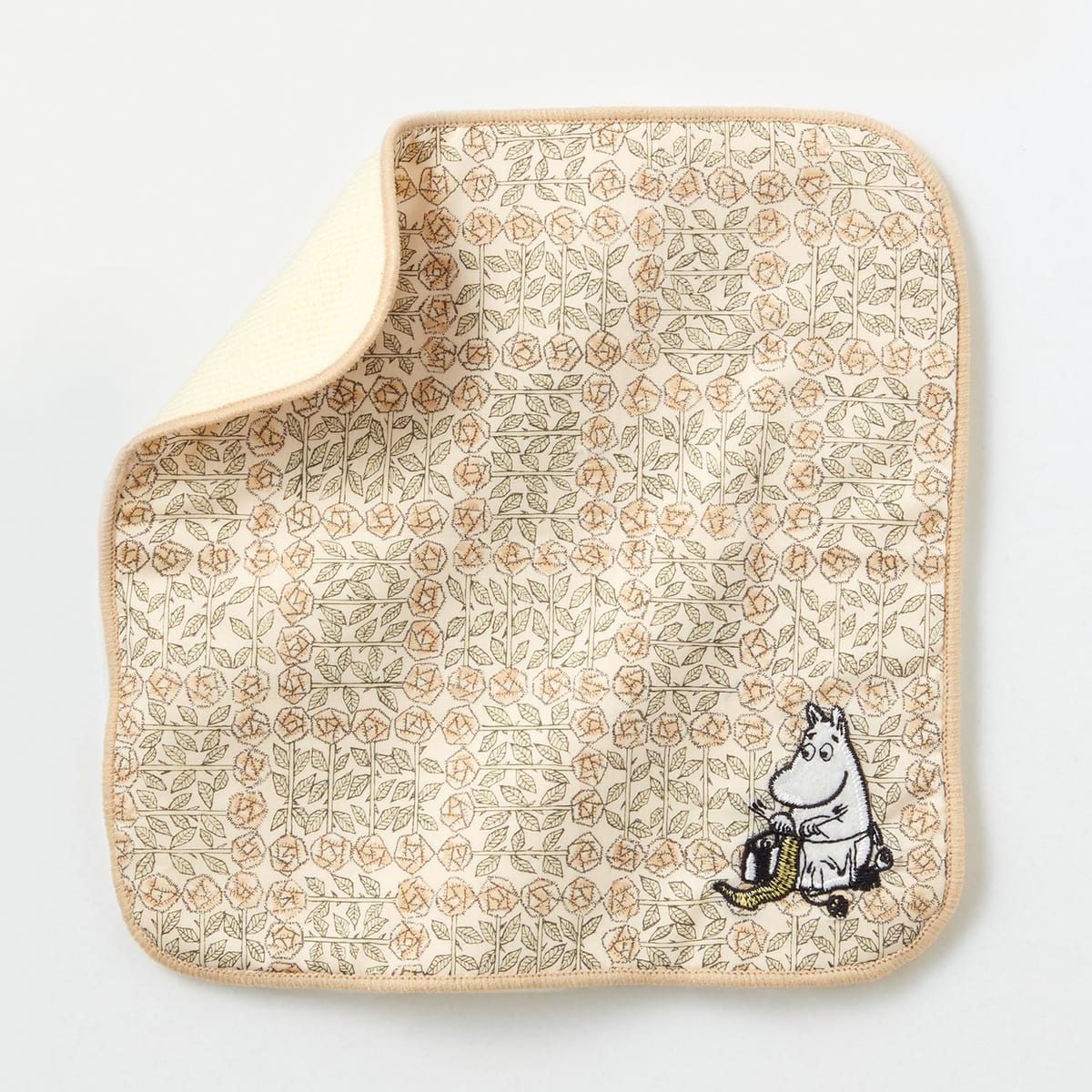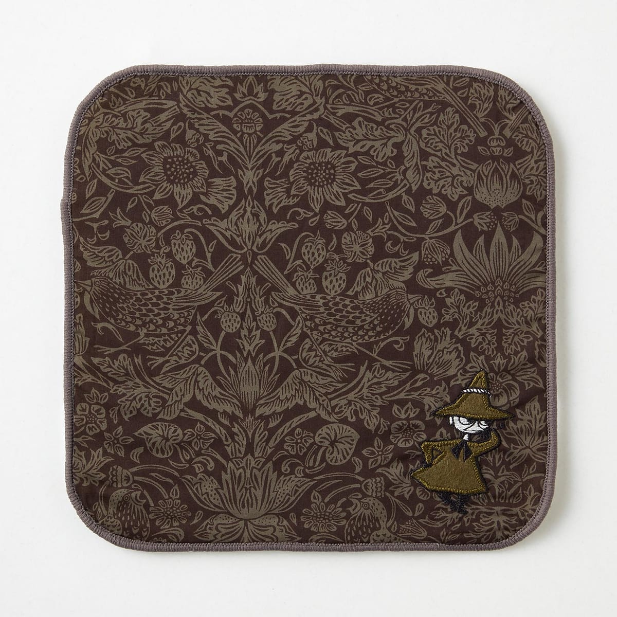「スナフキン」のアップリケが目を引くタオルハンカチは、男性も使えるシックなデザイン。