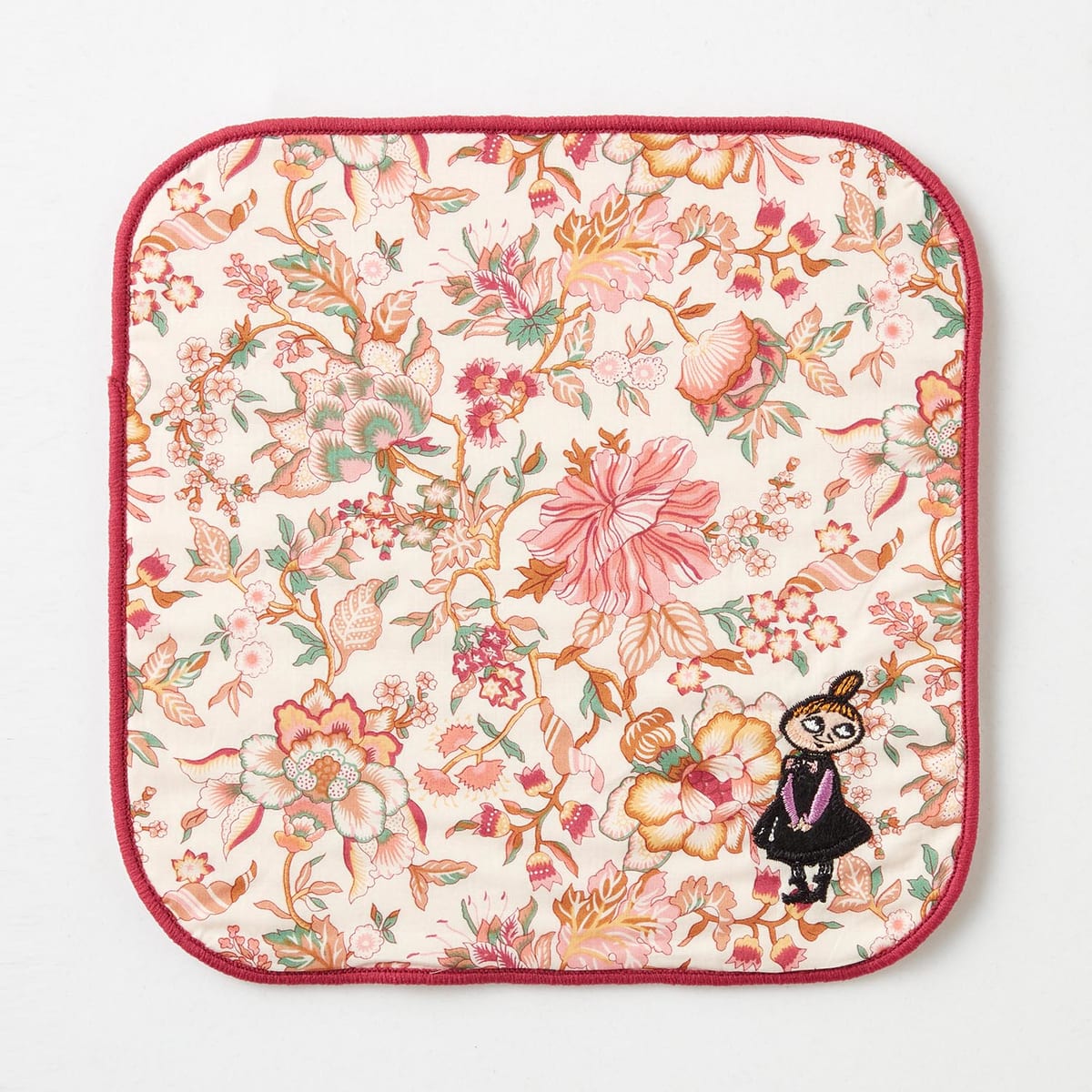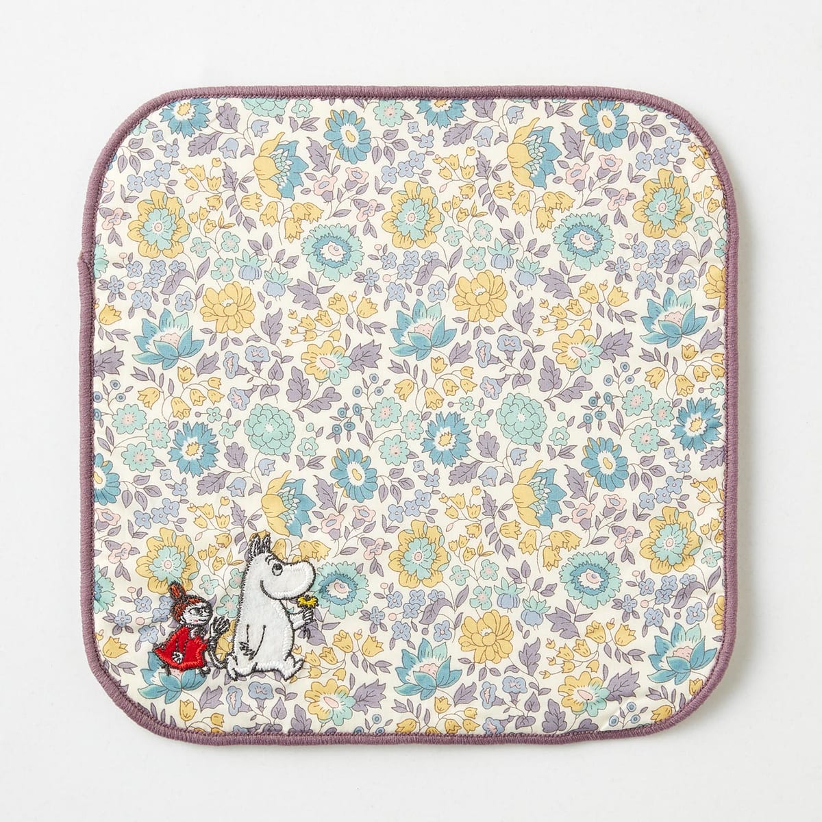 にっこりと優しい笑顔を向ける「ムーミンママ」がアクセントになったリバティハンカチ。