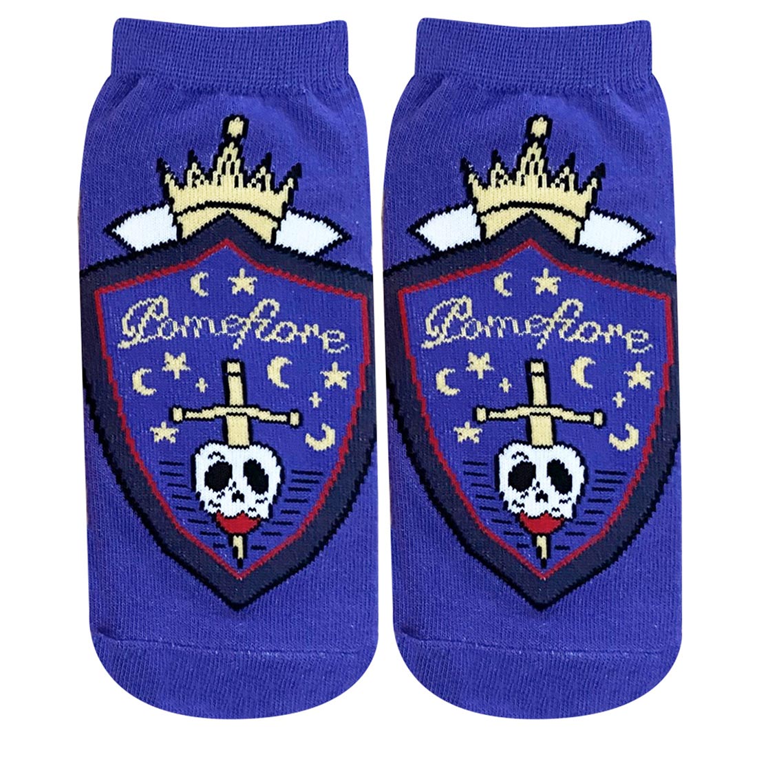 「ポムフィオーレ寮」のエンブレムを大胆にレイアウトしたくるぶしソックス。