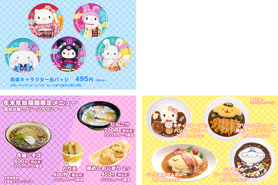 2022年1月1日から3日までのお正月期間は「ハローキティ」と「ディアダニエル」が晴着姿で登場します。