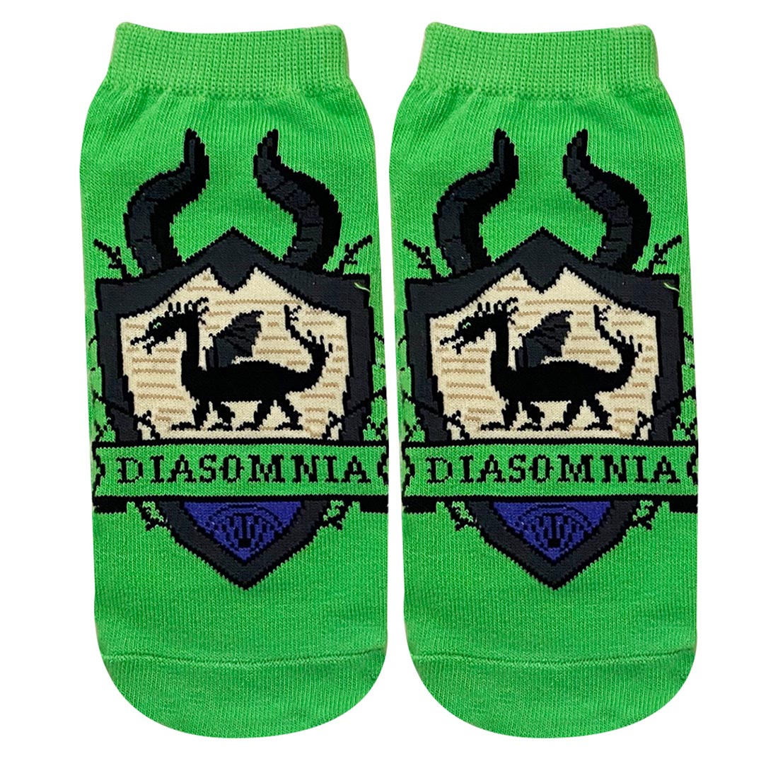 「ディアソムニア寮」の寮章を、足の甲の部分に大胆にレイアウトしたくるぶし丈ソックス。