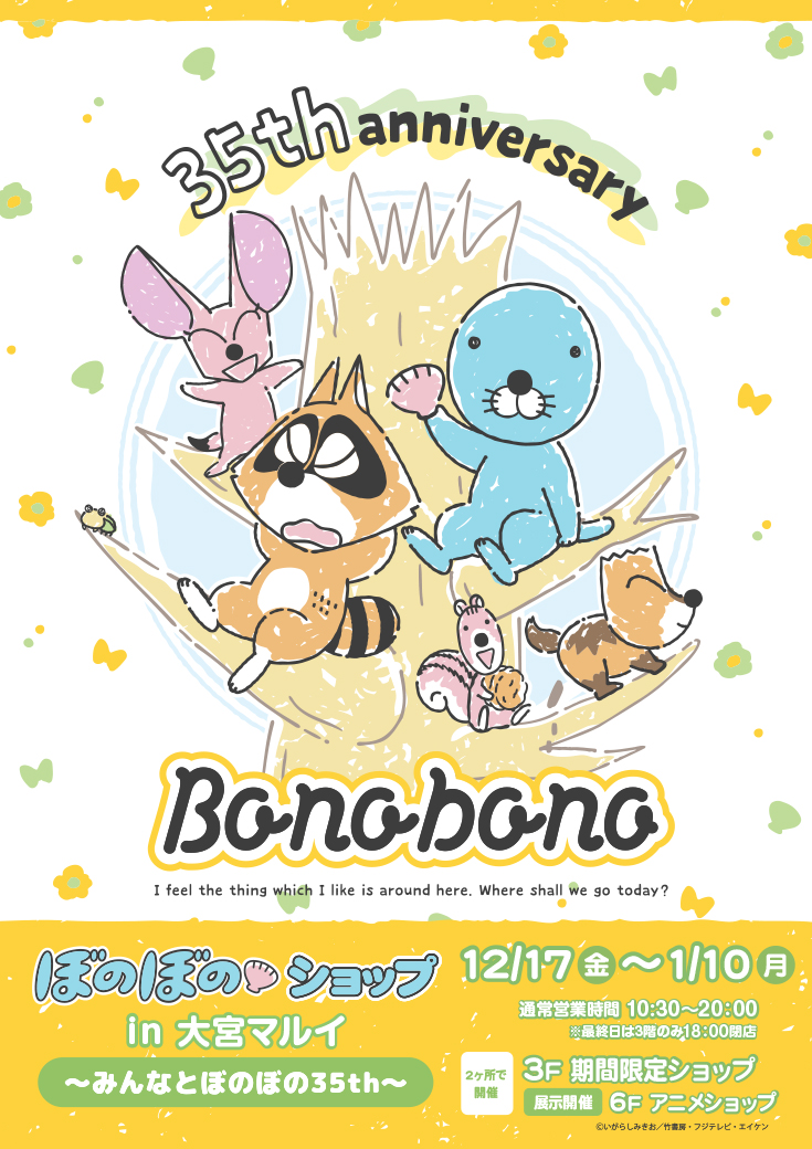 アニバーサリーを記念して「ぼのぼのショップ in マルイ~みんなとぼのぼの35th~」が開催しています。