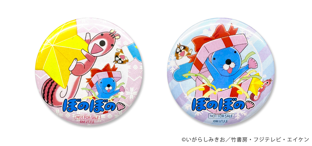 期間中、イベントショップにて「ぼのぼの」グッズを税込2,000円以上購入すると、「缶バッジ(非売品)」をランダムで1個(全5種+季節限定柄2種)プレゼント!