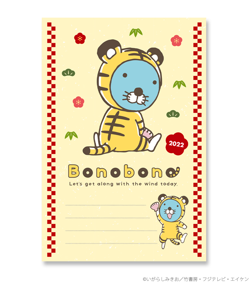 寅になりきって元気いっぱいジャンプする「ぼのぼの」が愛らしいデザインです。