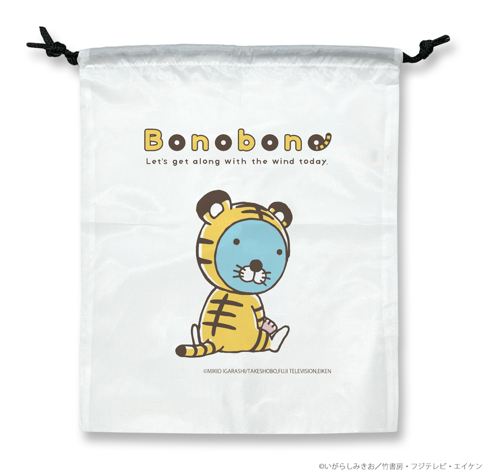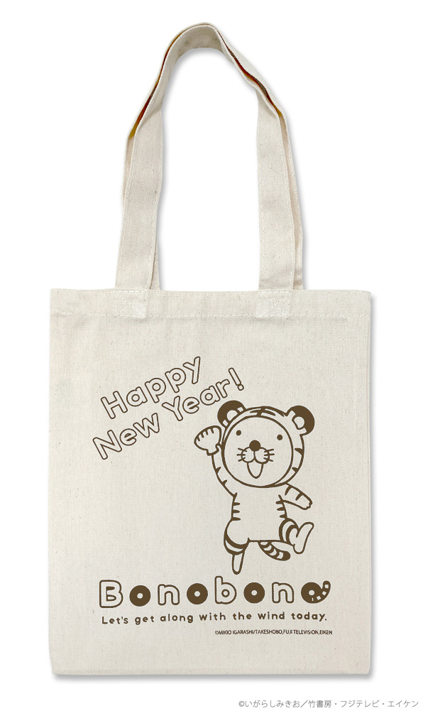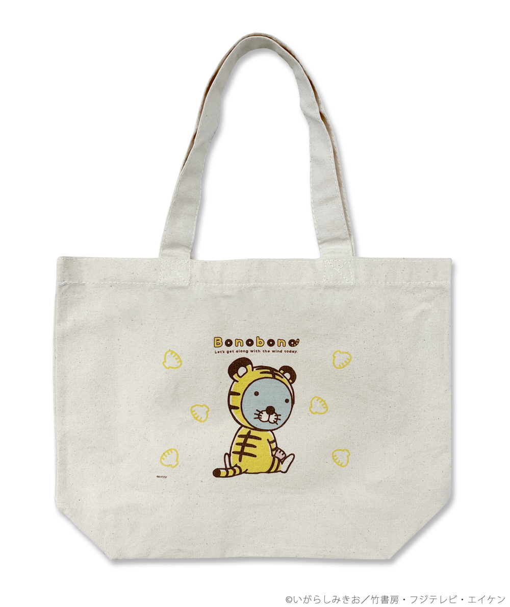 2022年の干支・寅になりきった「ぼのぼの」の振り返りお座りポーズが描かれた「ランチトート」です。
