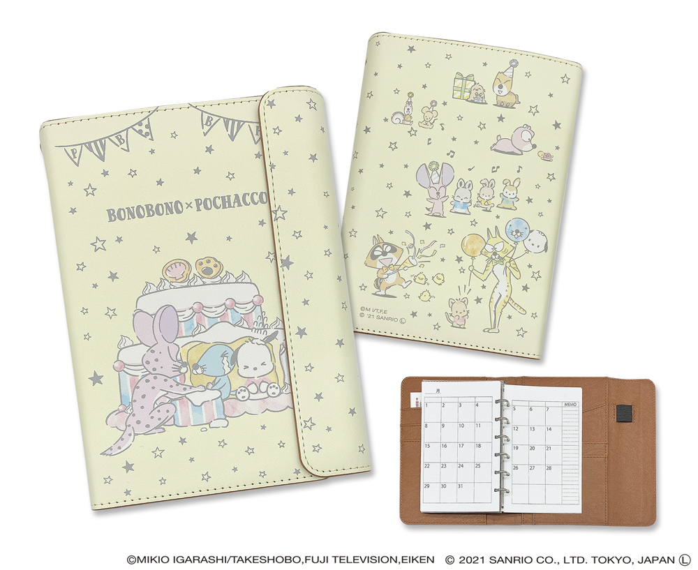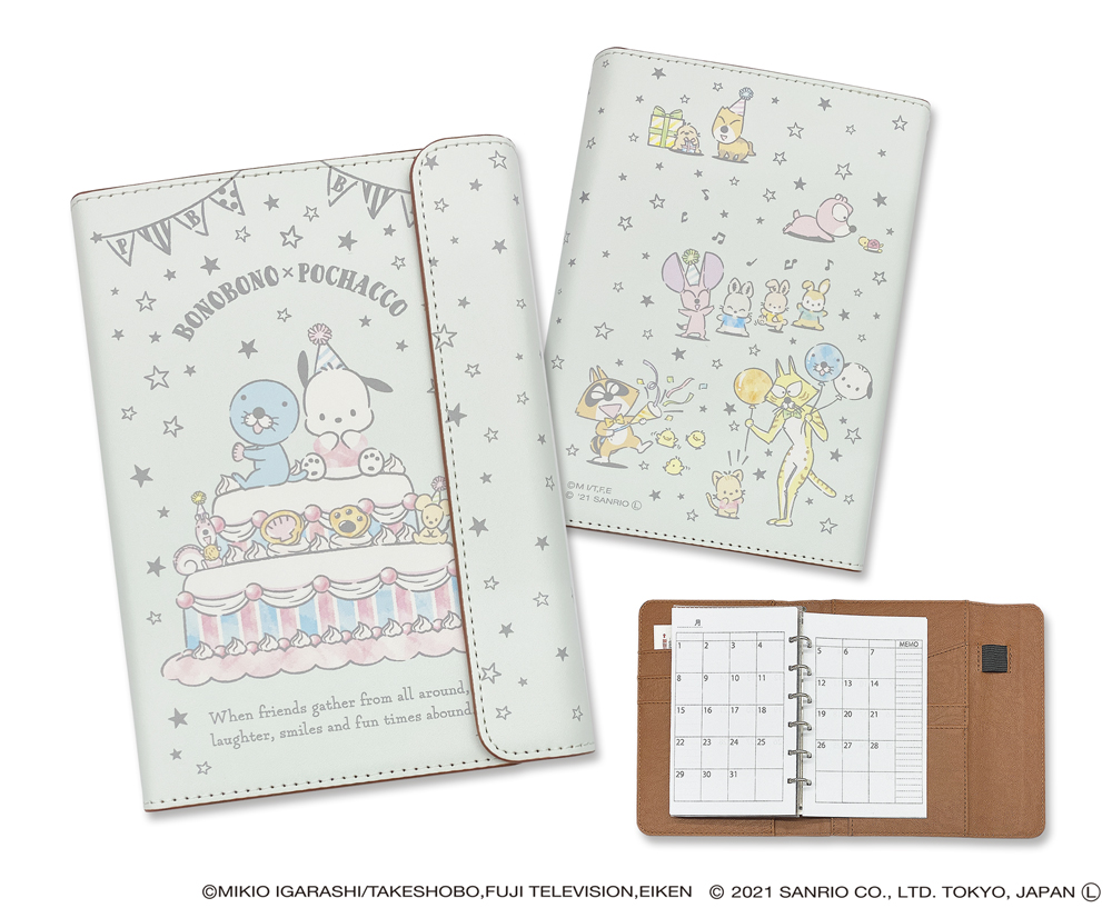 「システム手帳B」は、「しまっちゃうおじさん」にケーキの中にしまわれてしまう「ぼのぼの」と「ポチャッコ」がデザインされています。