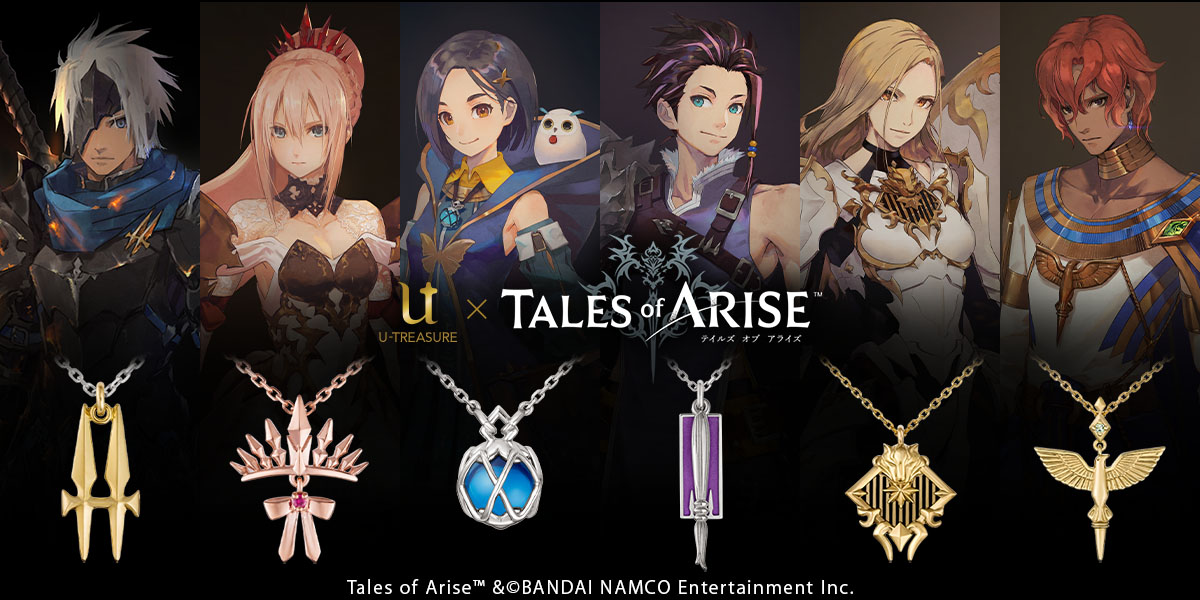 今回登場するのは、『テイルズ オブ アライズ』に登場する「アルフェン」「シオン」「リンウェル」「ロウ」「キサラ」「テュオハリム」をイメージした6種の本格ジュエリー。