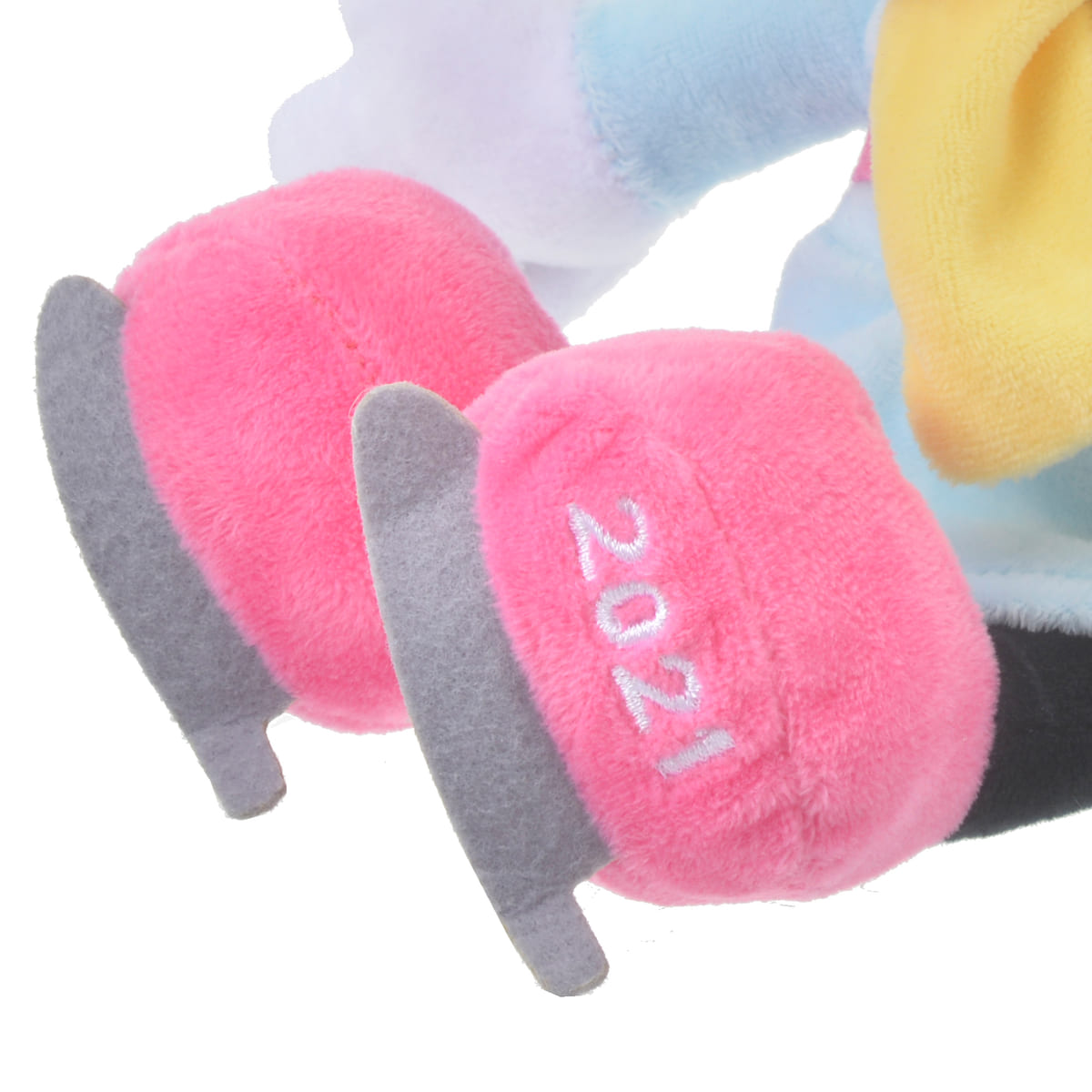 世界700体限定で販売される、スケートを楽しむ「ミニーマウス」がデザインされた、特別なぬいぐるみ。
